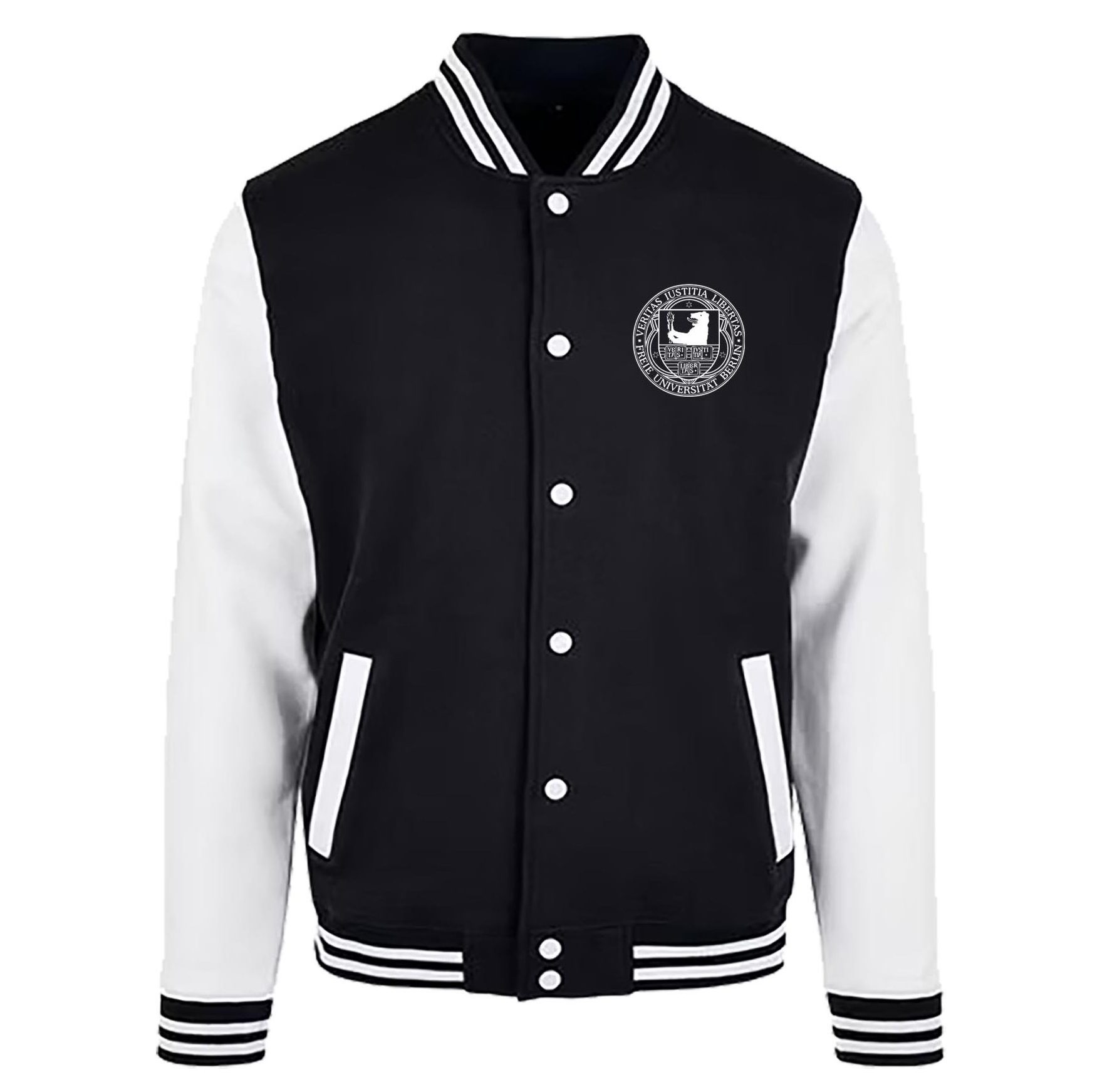 Kontrastfarbener Druckknopfverschluss auf der Vorderseite